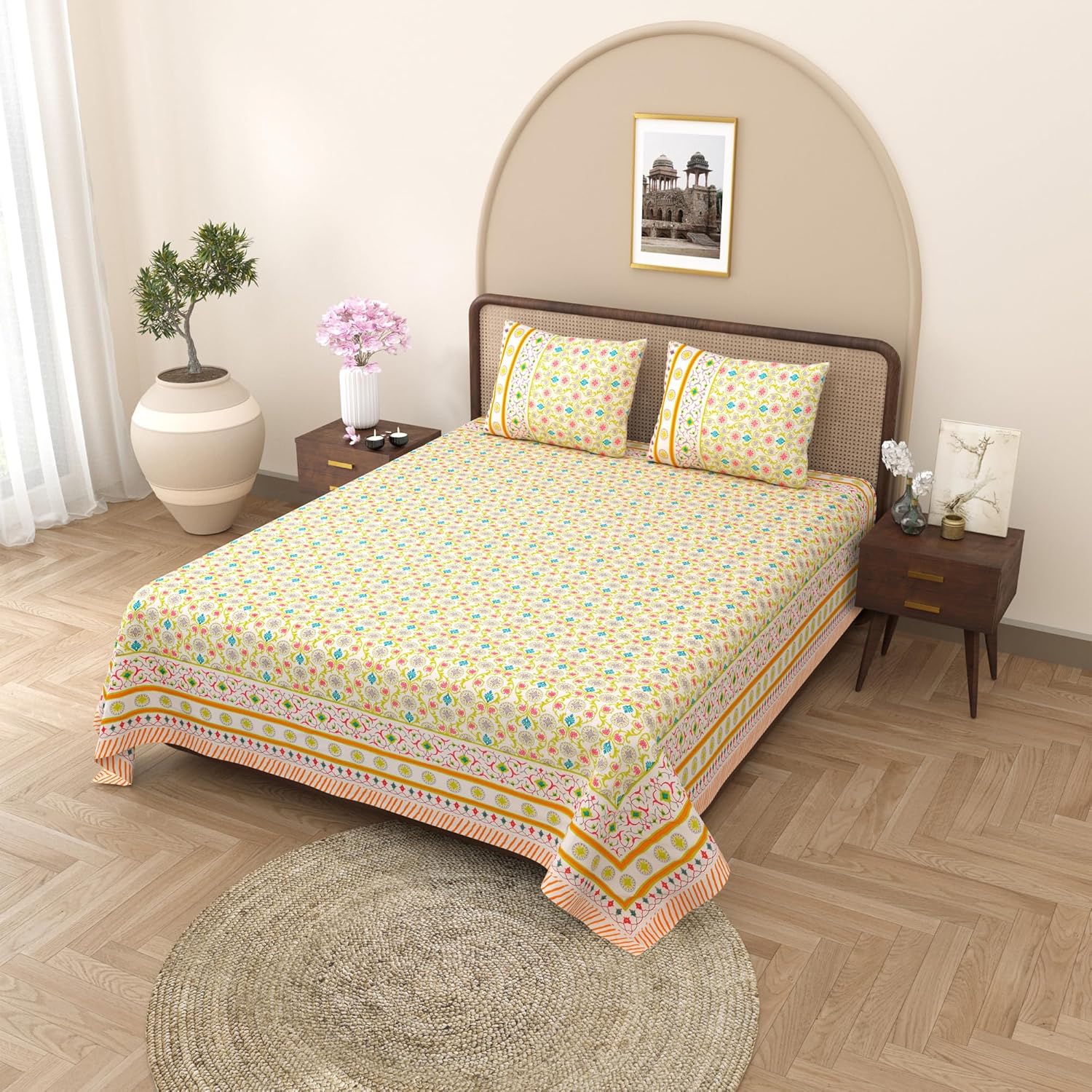 Curious Lifestyle 100% Cotton Printed Bedsheet for King Size Bed with 2 Pillow Covers – 144 TC