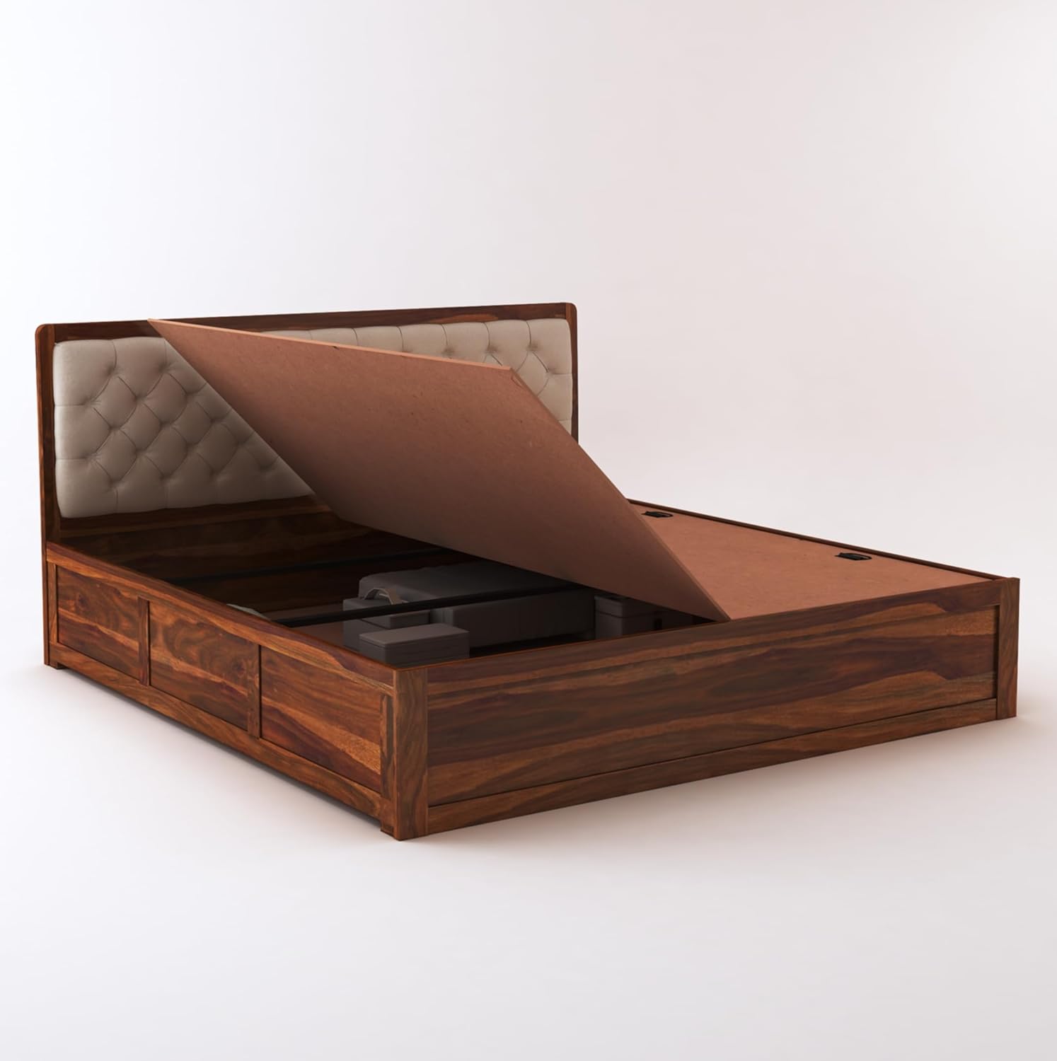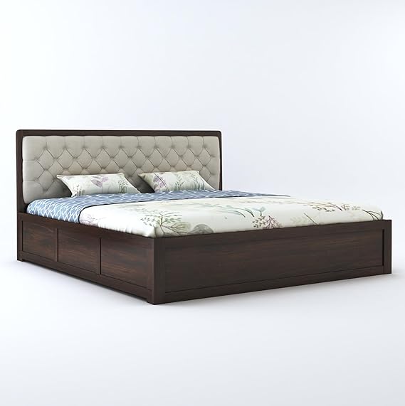 Curious Lifestyle Solid Sheesham Wood Queen Size Bed with Storage for Bedroom Living Room Solid Wooden Furniture Double Bed for Home Hotels (Walnut Finish)